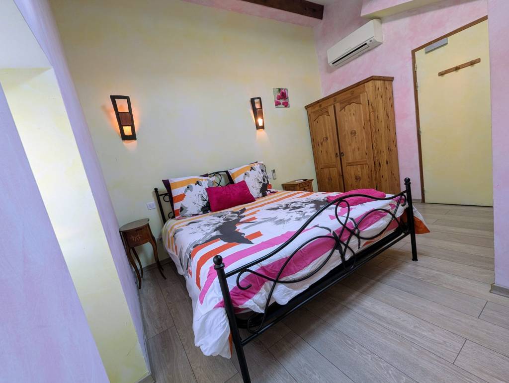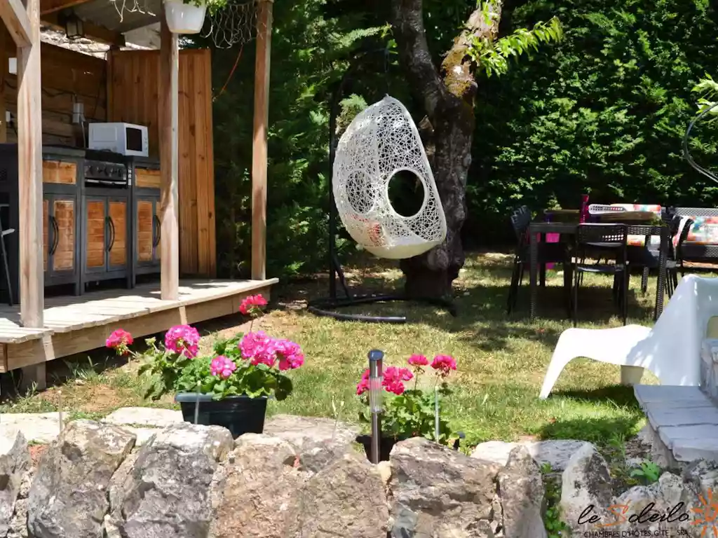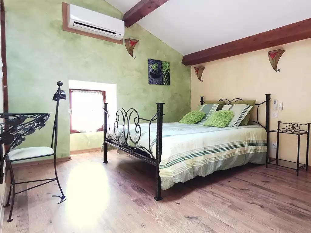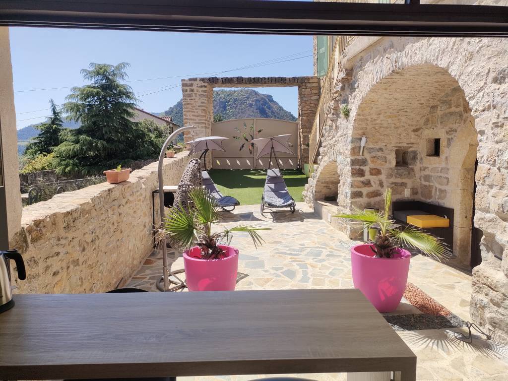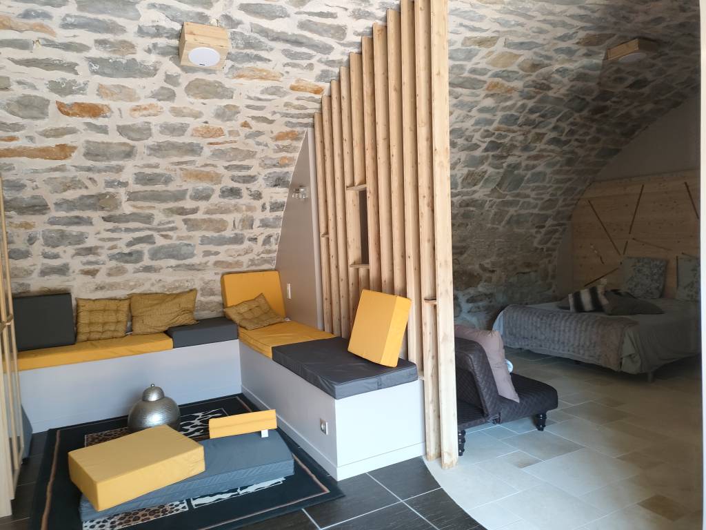 Décorée avec goût et volupté, cette chambre d'hôtes avec piscine et spa du Sud Aveyron Lozère dispose d'une vue sur le rocher de Capluc et peut accueillir jusqu'à 3 personnes.
