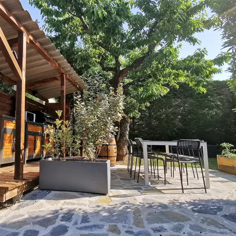 Si vous êtes tentés par les rayons du soleil et le champ matinal des oiseaux vous pourrez prendre votre petit déjeuner en extérieur dans le jardin, profitez du jardin équipé d'une cuisine d'été avec plancha, la piscine et le spa extérieur mis gratuitement à votre disposition.