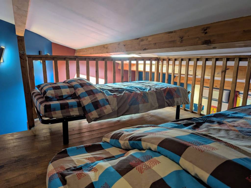 Une mezzanine peut accueillir une ou 2 personnes sur 2 lits-twin pouvant éventuellement se rapprocher pour ne faire qu'un seul grand lit.