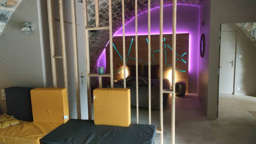 La Suite « Soleil Eau & Spa », vous permettra de profiter en toute intimité de votre spa et hammam privatif intégrés à votre chambre d'hôtes dont le mobilier allie design, tradition, jeux de lumière et musique.
